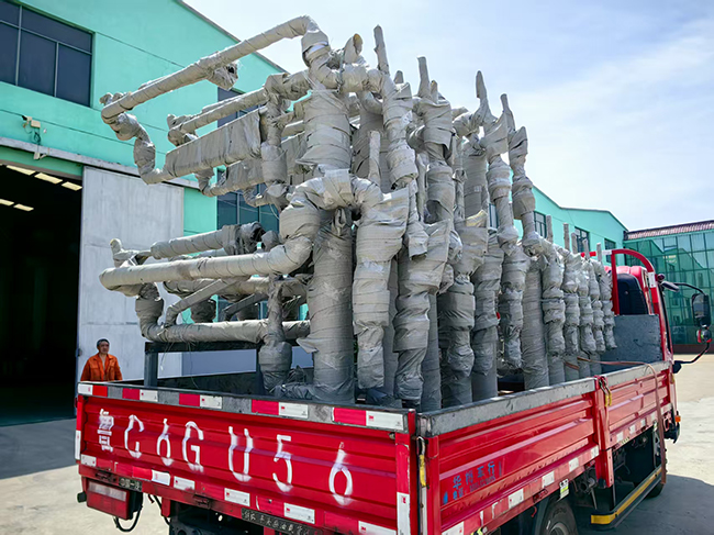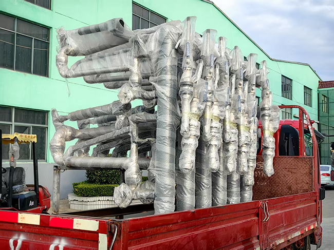 山東青島客戶定制采購的一批裝車鶴管已通過物流發往使用現場